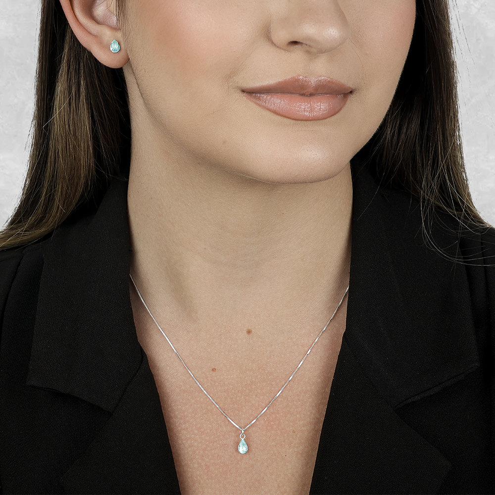 Conjunto de Gota Azul em Zircônia Prata 925